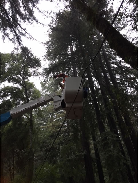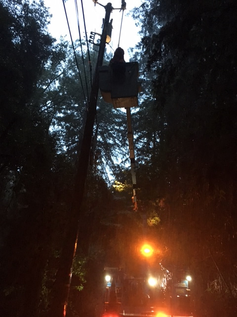 PG&E Troubleman Ralph Storment prepares to ascend into the